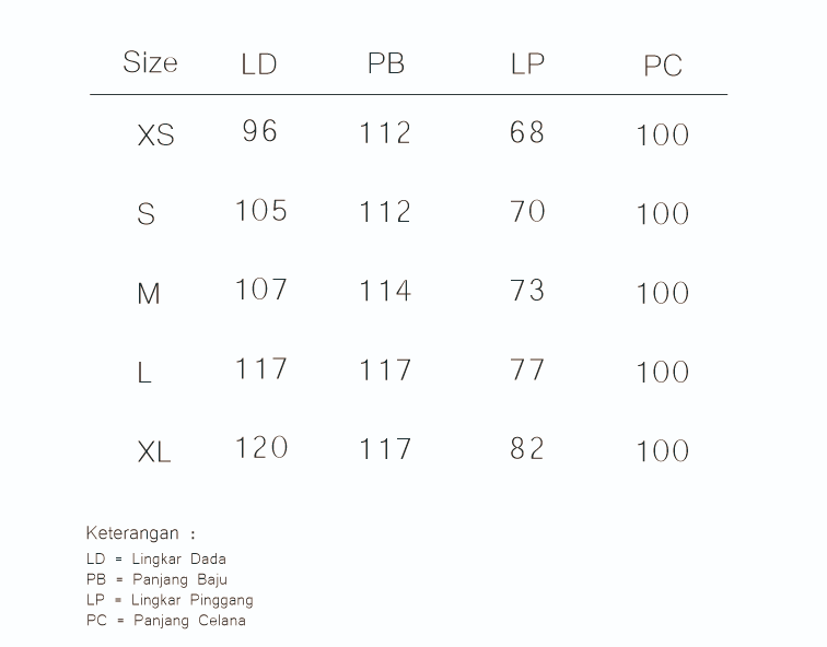 | Size | XS, S, M, L, XL |
